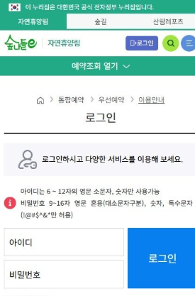 모바일) 강원도 자연휴양림 예약