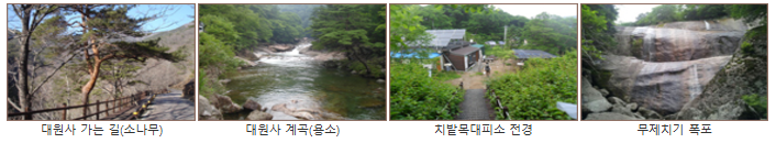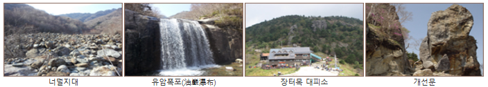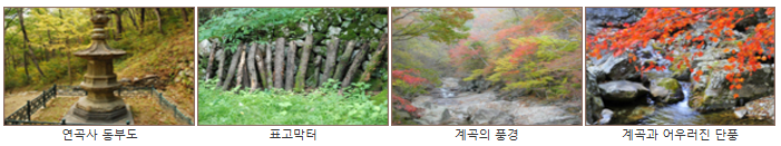 특히 10월 중순부터 11월 초순까지 가을 단풍 감상에 적합한 코스입니다. 산, 물, 사람 셋이 모두 붉다 하여 이름 붙여진 삼홍소는 단풍 산행의 최적 장소로 추천할 수 있습니다. 또한, 잠흥소, 삼홍소, 통일소, 연주담, 남매폭포 등 자연미 뛰어난 소와 담, 폭포가 연이어져 있어 산행에 다양한 재미를 줍니다.