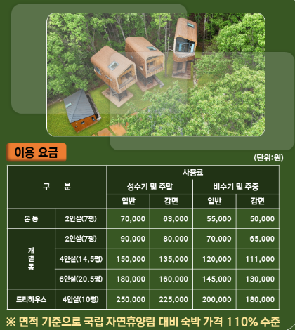 | 트리하우스 | 200,000원 | 250,000원 | 4인 | 6인 |